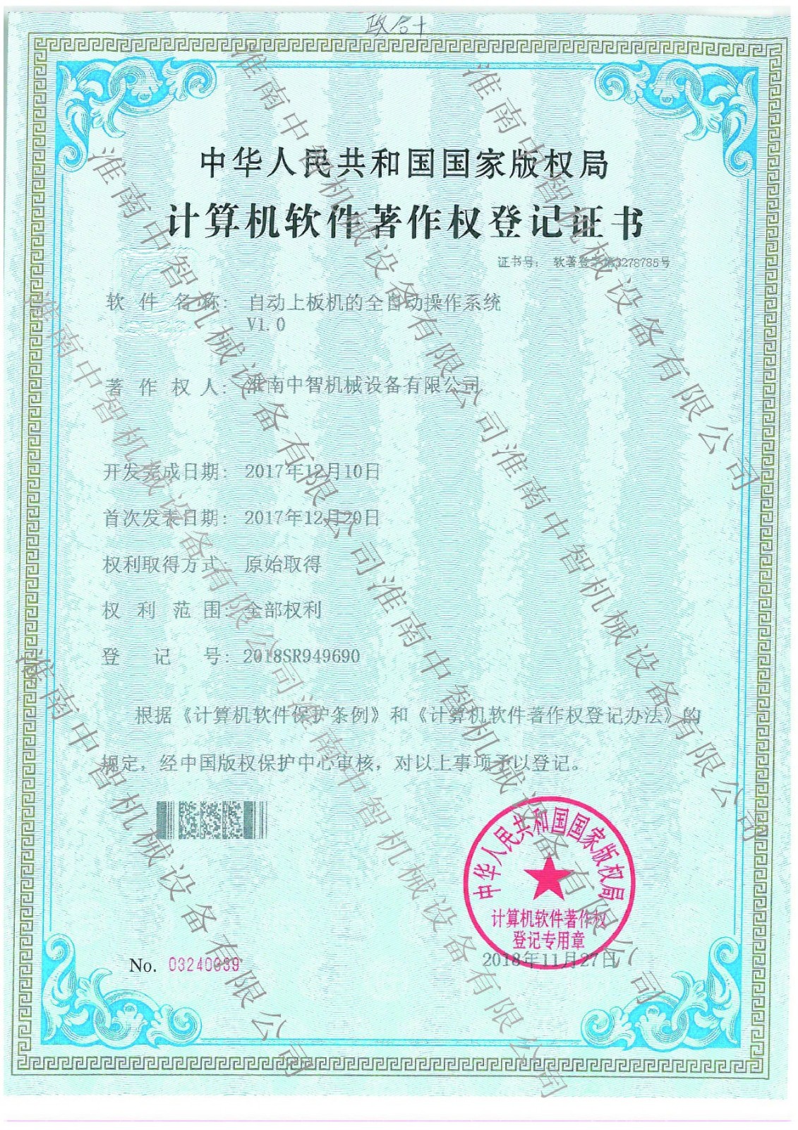 淮南乐玩体育机械自动上板机全自动操作系统专利证书